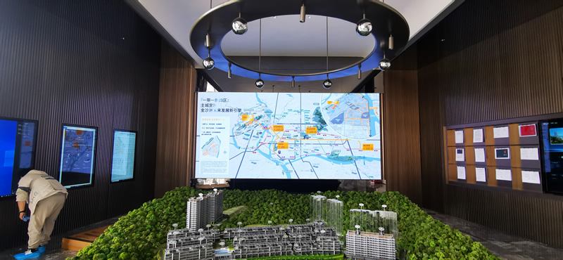 本案例中,维康国际为广州市金沙洲某售楼中心提供了一套全彩LED显示屏,如上图所示,采用P2全彩LED系列,大屏幕画面显示清晰,分辨率高,有着很好的视觉体验效果。